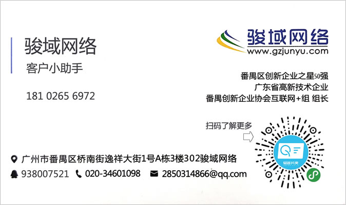 廣州駿域網(wǎng)絡(luò)科技有限公司成立于2005年,是一支由眾多具有多年實踐經(jīng)驗的專業(yè)人士組成的高新技術(shù)團隊,專為企業(yè)提供網(wǎng)站建設(shè)、全網(wǎng)營銷、郵箱等服務(wù),我們擁有嚴(yán)謹(jǐn)?shù)某绦蜷_發(fā)人員、專業(yè)的美工設(shè)計、隨時為您效勞的售后服務(wù)人員,團隊人數(shù)達(dá)一百多人。目前我們已經(jīng)榮幸的為廣州眾多知名企業(yè)提供了包括網(wǎng)站建設(shè)、手機網(wǎng)站、小程序、企業(yè)軟件開發(fā)等多種基于互聯(lián)網(wǎng)技術(shù)的服務(wù)。 通過長期積累,駿域網(wǎng)絡(luò)目前已經(jīng)擁有50000多家客戶。